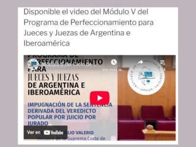 PROGRAMA DE PERFECCIONAMIENTO PARA JUECES Y JUEZAS DE ARGENTINA E IBEROAMÉRICA REFLEJAR informa que se encuentran disponibles cuatro módulos del «Programa de Perfeccionamiento para Jueces y Juezas de Argentina e Iberoamérica» en su canal de YouTube: Módulo II: Nuevos Sistemas procesales y oficinas judiciales en el Poder Judicial de San Juan Módulo III: La comunicación […]