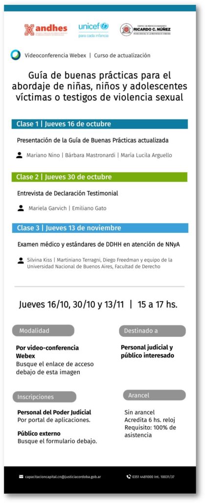 La publicación por parte de la Escuela de Capacitación del Poder Judicial “Dr. Guillermo Snopek” de la capacitación precedente, se realiza con el único objeto de informar a los operadores jurídicos, las ofertas académicas que llegan a su conocimiento.