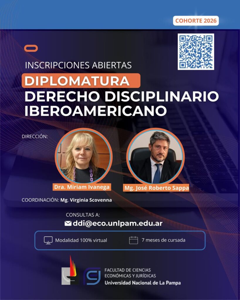 Más información: https://www.eco.unlpam.edu.ar/diplomatura-en-derecho-disciplinario-iberoamericano/