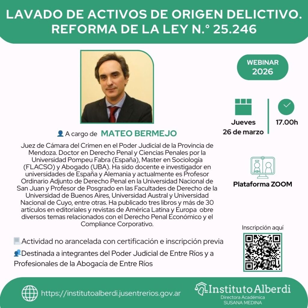 🌐 Más información: https://institutoalberdi.jusentrerios.gov.ar/events/webinar-lavado-de-activos-de-origen-delictivo-reforma-de-la-ley-n-25-246-2/