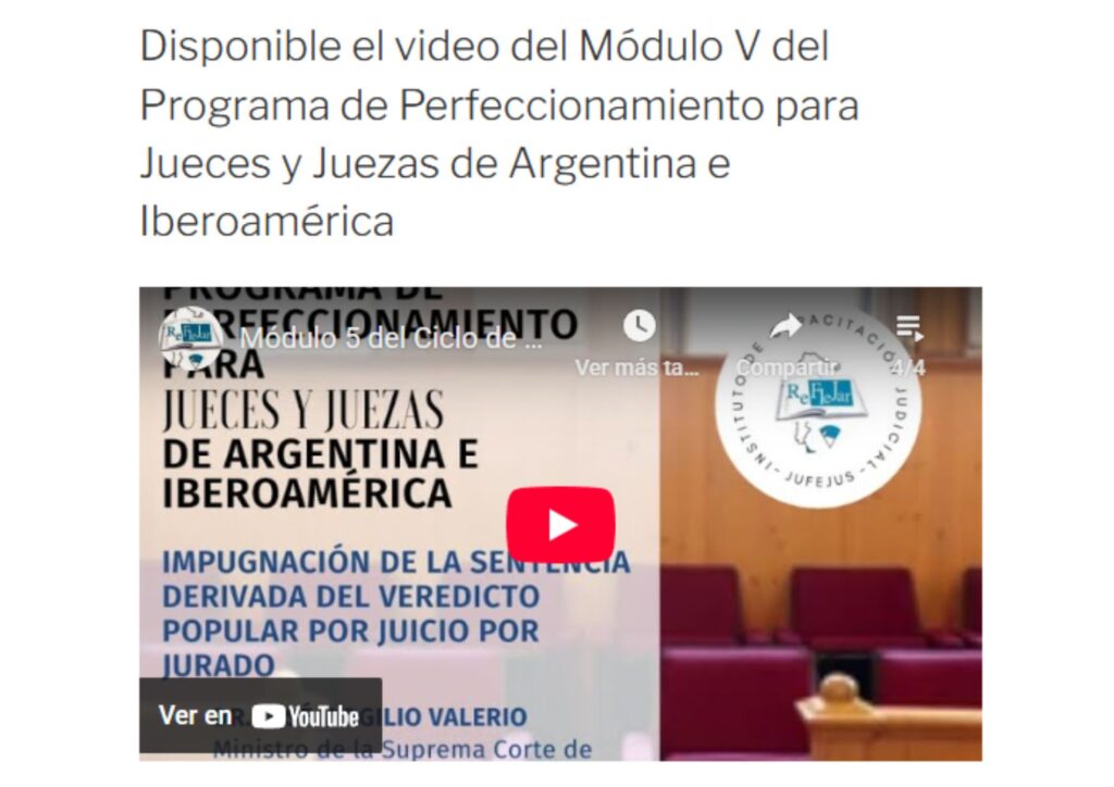 REFLEJAR informa que se encuentran disponibles cuatro módulos del «Programa de Perfeccionamiento para Jueces y Juezas de Argentina e Iberoamérica» en su canal de YouTube:
