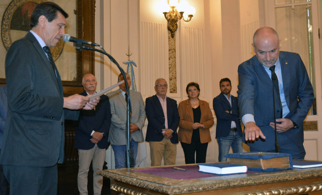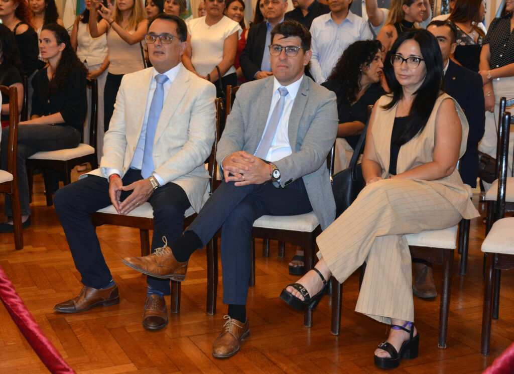 Los jueces de la Suprema Corte de Justicia Dres. Federico Francisco Otaola – presidente-, Lisandro Aguiar, Gonzalo de la Colina y Emma Mercedes Arias asistieron al acto de jura del ministro de Minería de la provincia Ing. José Gabriel Gómez; ceremonia que se cumplió hoy, 6 de enero de 2025, en el Salón de la Bandera de Casa de Gobierno.