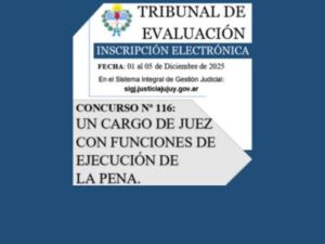 📢⚖️ ¡Se abre la inscripción al Concurso N° 116!Un Cargo de Juez con Funciones de Ejecución de la Pena El...