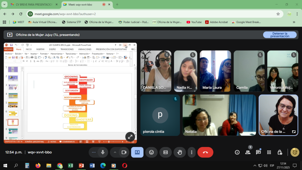 En conmemoración al 25 de noviembre, “Día Internacional de la Eliminación de la Violencia contra las Mujeres”, la Oficina de la Mujer del Poder Judicial desarrolló durante el mes de noviembre, entre otras actividades, un taller presencial denominado “Entornos digitales seguros. El rol de familia y la justicia” en los Centros Judiciales de San Pedro de Jujuy, Libertador General San Martín, Perico y San Salvador de Jujuy y de manera virtual en la ciudad de Humahuaca.