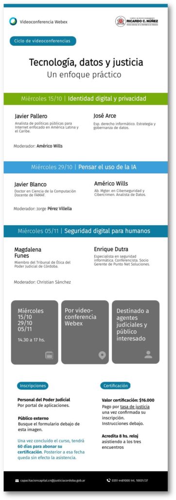 La publicación por parte de la Escuela de Capacitación del Poder Judicial “Dr. Guillermo Snopek” de la capacitación precedente, se realiza con el único objeto de informar a los operadores jurídicos, las ofertas académicas que llegan a su conocimiento.